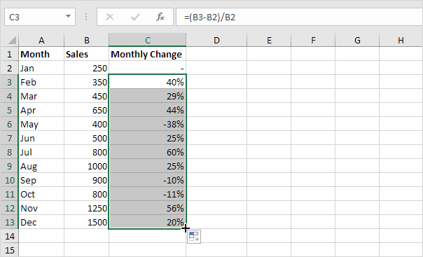 فرمول درصد تغییرات (به عنوان مثال، برای محاسبه تغییر ماهانه و مجموع تغییر) به طور گسترده ای در اکسل استفاده می شود.